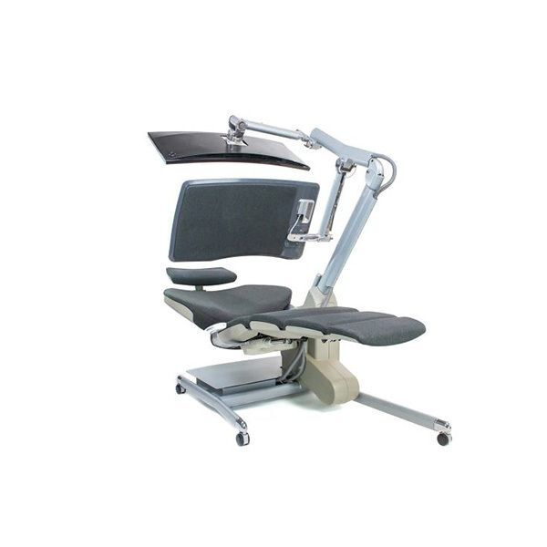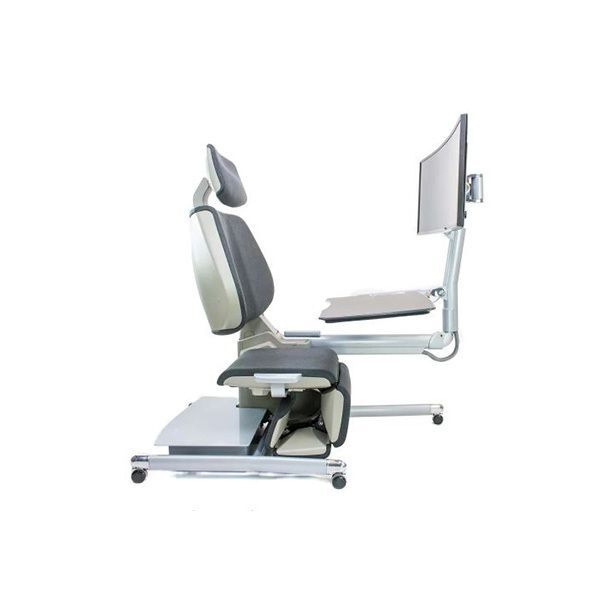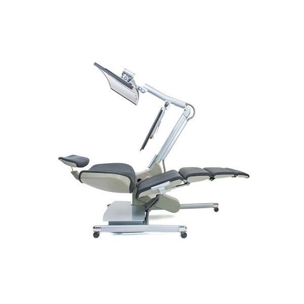 Het Altwork Station is een revolutionair werkstation dat je in staat stelt liggend te werken. Daardoor is deze stoel een fantastische oplossing voor mensen met veel nek-, rug-, schouder- of beenklachten. Terwijl je de stoel in liggende positie brengt, kantelt het bureau met je mee. Zo weet je zeker dat je altijd vanuit de juiste positie werkt. De voetensteun ontrolt zich vanonder het zitvlak en magneten op het werkblad zorgen ervoor dat je toetsenbord, muis en tablet op de juiste positie blijven liggen. Je kunt ervoor kiezen volledig horizontaal te liggen, maar je kunt de stoel ook in half liggende positie instellen.