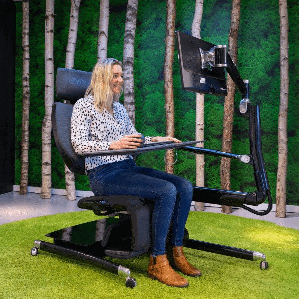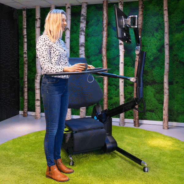 Een verrijdbare werkplek die zich volledig aanpast aan jouw werkhouding: dat is het Altwork Station. Meestal pas jij je aan je werkplek aan: je buigt voorover als je aan het typen bent of je werkt de hele dag zittend omdat je niet de mogelijkheid hebt om staand te werken. Neem je plaats op het Altwork Station dan bepaal jij in welke houding je werkt en daarop pas je je werkplek aan. Of je nu zittend, staand of liggend wilt werken: het Altwork Station beweegt met je mee.