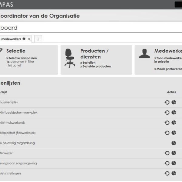 Het Duurzaam inzetbaarheidskompas is online software, waarmee zowel voor de werknemer als de werkgever waardevolle informatie beschikbaar is over gezondheidsmanagement en duurzame inzetbaarheid.