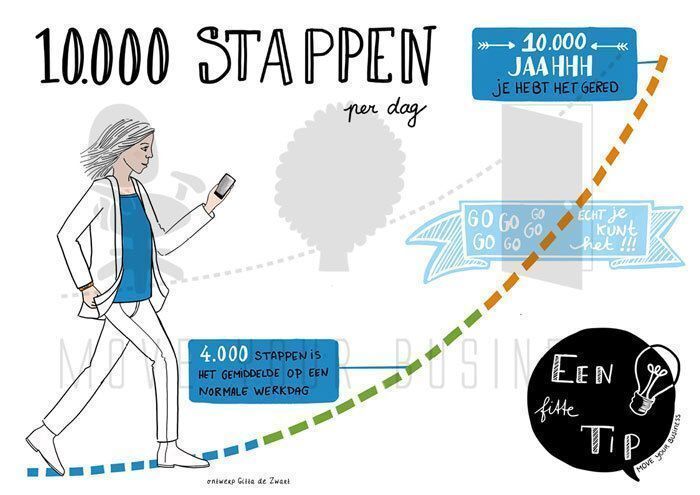 Met de ‘Fitte tip’ bordjes van Move You Business zorg je voor meer beweging en vitaliteit op de werkvloer. De bordjes zijn voorzien van praktische beweegtips en ‘quick win’ tips voor een gezondere leefstijl. Plaats de bordjes op een strategische plek voor het beste resultaat. Hang het bordje ‘Het geheim van traplopen’ bijvoorbeeld naast de lift en het bordje ‘Wandelend vergaderen’ naast de ingang van de vergaderruimte. Onderzoek toont aan dat een stimulans in de vorm van een bordje ervoor zorgt dat mensen 11% meer de trap nemen!