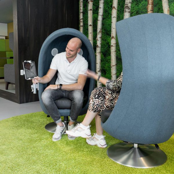 Ook voor de kantooromgeving is de akoestische stoel een uitkomst. Een kantooromgeving heeft veel afleidingen. Per dag word je wel 240 keer onderbroken in je werkzaamheden, wat een negatieve invloed heeft op je productiviteit en concentratievermogen. Neem je plaats in de 4-Senses dan kun je je afschermen van je omgeving zodat je je kunt focussen op een belangrijke taak of telefoongesprek. Of je neemt even de tijd om te ontspannen zodat je daarna weer vol energie aan de slag kunt.