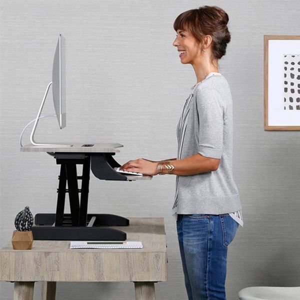 Wissel zittend en staand werken supersnel af met dit zit sta werkstation. Handige en voordelige verstelbare werkplek voor thuis en op kantoor.
