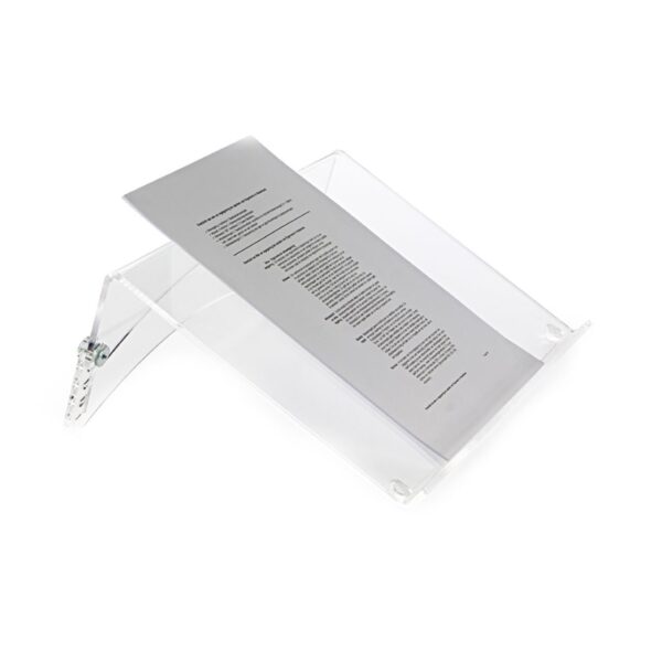 De documenthouder FlexDoc Helder heeft een stijlvol helder design en is geschikt voor zowel vaste als flexwerkplekken. De documenthouder is eenvoudig instelbaar en heeft een instelbereik van 10 tot 17 cm en is daardoor goed in te stellen tussen vrijwel ieder toetsenbord en monitor. De documenthouder heeft een compact formaat. Hierdoor past deze eenvoudig op het bureau en neemt niet onnodig veel ruimte in.