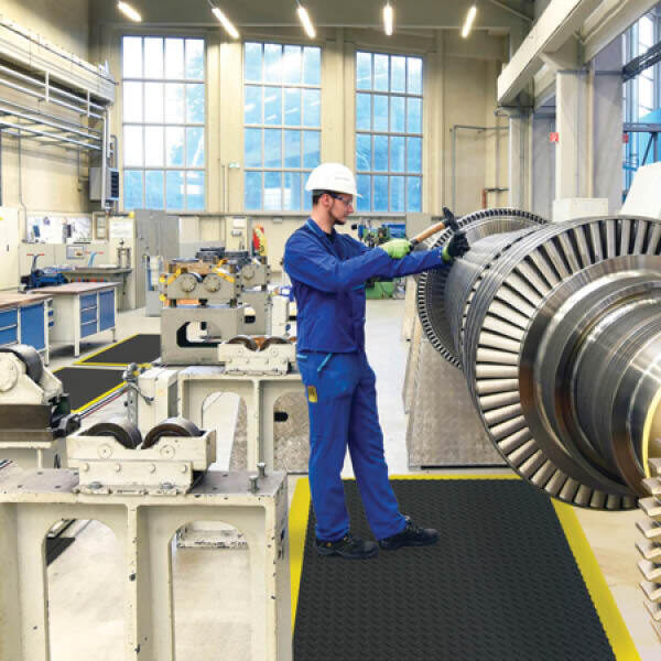 Ce système de tapis antifatigue modulaire présente un motif en damier renommé pour son adhérence et offre un confort exceptionnel, même lors d'une utilisation intensive. Il peut être installé rapidement et facilement pour couvrir de vastes surfaces de travail ou pour équiper des postes de travail individuels.