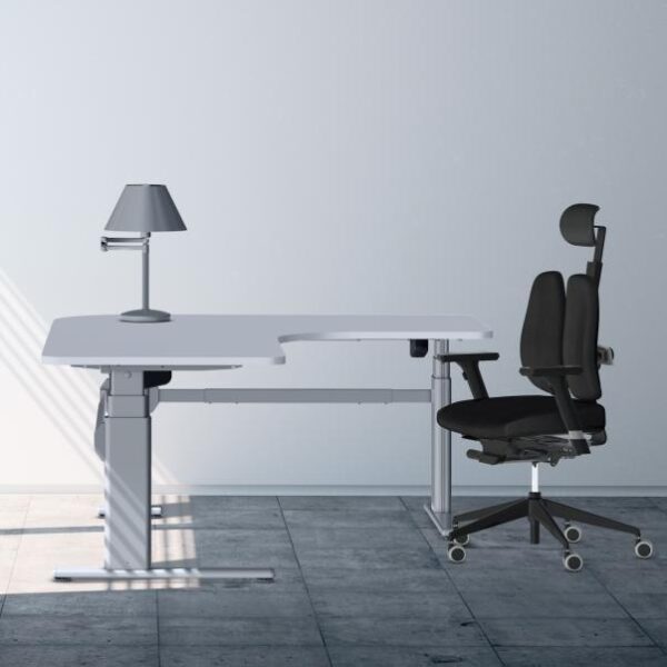 Een elektrisch verstelbaar hoekbureau, zoals de ErgoDesk E2+, verstel je eenvoudig met een druk op de knop. Het is stil, snel en geschikt voor dagelijks gebruik. Je hoeft niet te draaien of te sleutelen, waardoor je makkelijk afwisselt tussen zitten en staan.