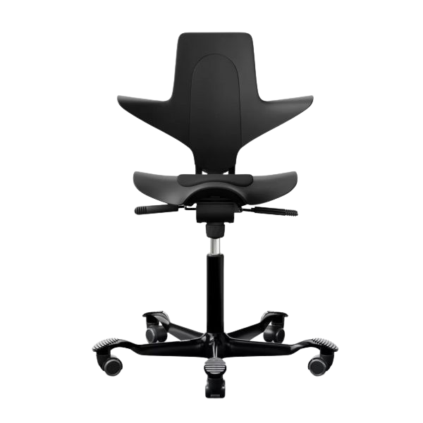 La chaise de bureau HAG Capisco 8010 avec une assise en selle n'est pas une chaise de bureau standard. Vous pouvez ajuster la chaise de différentes manières pour offrir une expérience d'assise variée. Elle est également bien adaptée pour travailler à un bureau en hauteur.