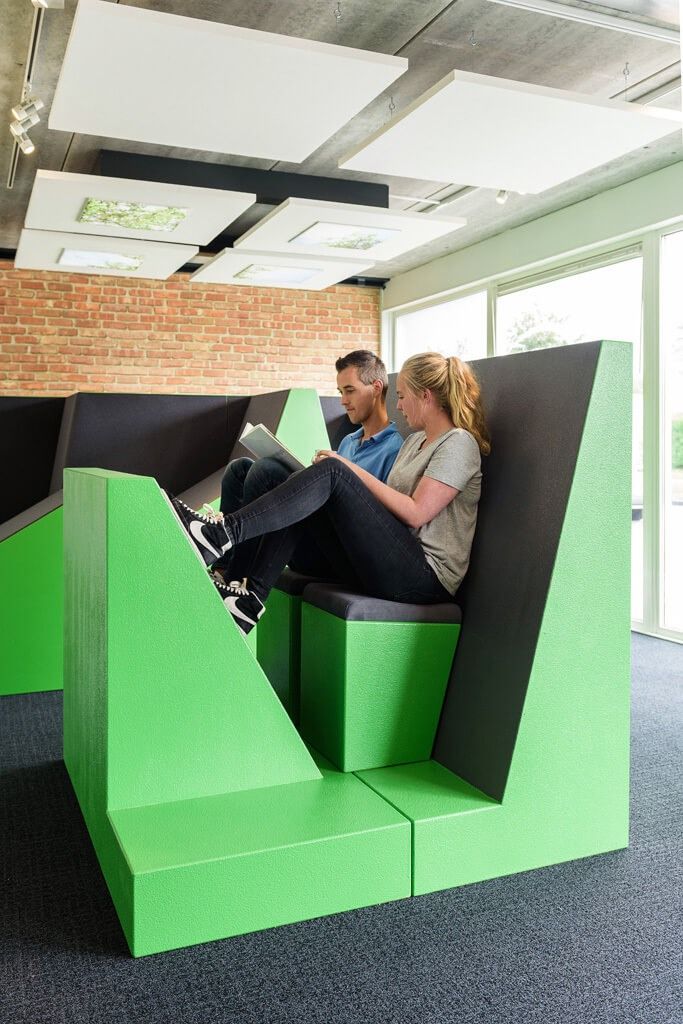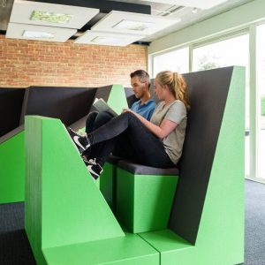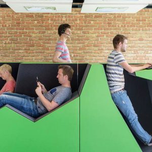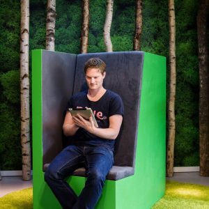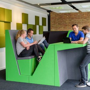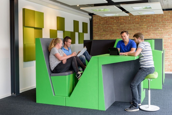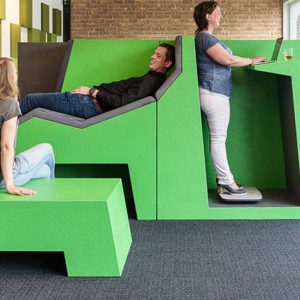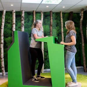 De Health2Work Cube bestaat uit 8 losse elementen. Deze elementen vormen met elkaar een vierkant, de Cube. De elementen kun je ook heel goed los van elkaar in een ruimte plaatsen. Kijk welk element goed bij je werk en omgeving past. De kleine tafel, de Scrum Cube, gebruik je voor een dagopening of een brainstormsessie. Wil je het werk onderbreken met een korte powernap? Dit doe je in de Lounge Cube.