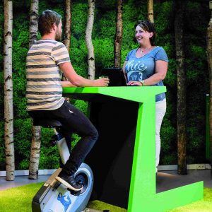 De Cube biedt maar liefst tien verschillende werkhoudingen. Onder het motto ‘de beste werkhouding is de volgende’ zorgt de Health2Work Cube met tien verschillende houdingen, waaronder fietsen, lopen, zit-sta en liggen, ervoor dat je makkelijk kunt wisselen van houding.