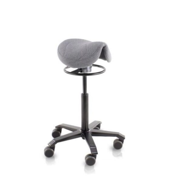 De Office Jumper ergonomische zadelkruk is een zit-stahulp met een brede zadelvormige zitting. Dit model bevordert een actieve zithouding door middel van een verstelbaar balansmechaniek. De ergonomisch gevormde brede zadelzitting zorgt hierbij voor een open heuphoek. Zonder zwaartekracht neemt het lichaam van nature een houding aan die het minste spierinspanning vereist. Deze neutrale houding wordt onder andere gekenmerkt door een open heuphoek. De zadelkruk stimuleert hiernaast direct een rechte rug, waarbij de wervelkolom en spieren het minst belast worden. Het instelbare balansmechaniek maakt het mogelijk om te bewegen en te balanceren tijdens het zitten. De Jumper zadelkruk is ideaal voor elke kantoor- of thuiswerkomgeving.