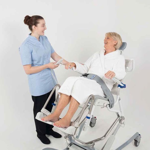 De Ocean E-Vip douchestoel is een gebruiksvriendelijke elektrisch verstelbare douche- en toiletstoel.