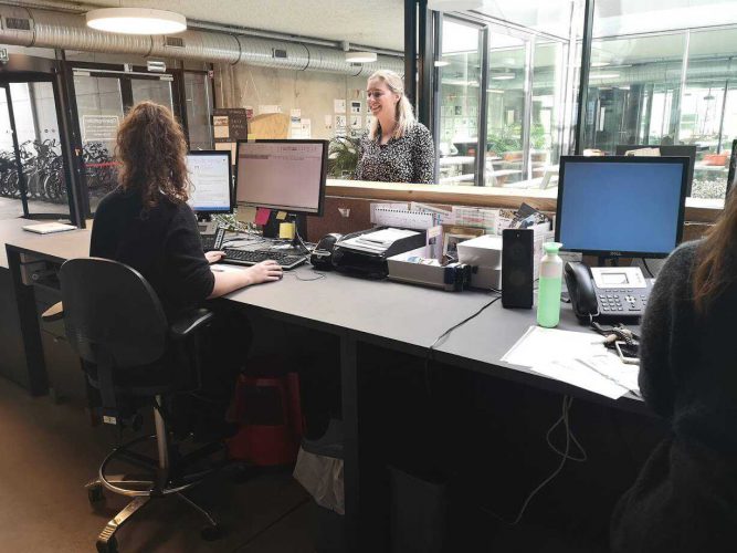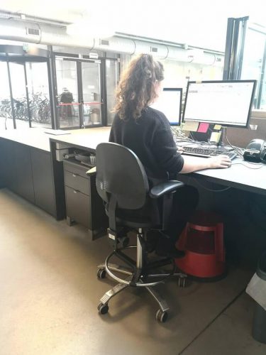 Sofie Baetsle: “Dankzij de stoel zit ik op mijn gemak en wordt mijn rug voldoende ondersteund tijdens het werken achter de balie. Ik kan zitten afwisselen met staand werken."