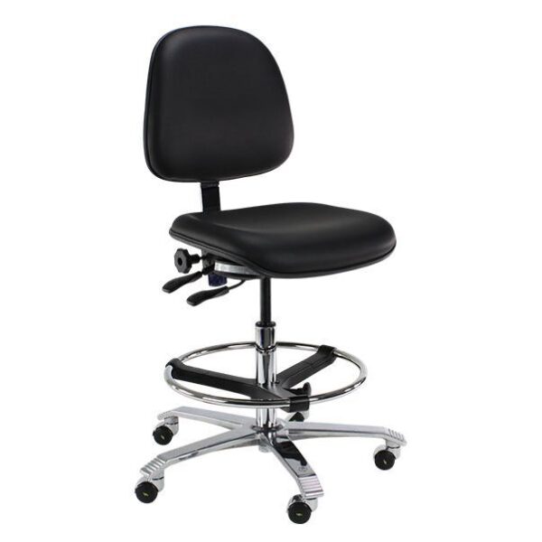De Score Ergo 2301 Cleanroom is een ergonomische bureaustoel met een in hoogte verstelbare voetenring en verstelbare zithoek. De hoogte van de zitting kan eenvoudig met de hand worden versteld.
