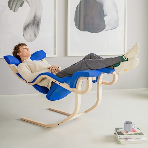De Gravity Balans is een van de meest bijzondere stoelen van het merk Varier. De stoel is namelijk niet alleen een ligstoel. Het is met deze stoel mogelijk om in 4 verschillende houdingen te zitten. In de voorste stand stimuleert hij het actief zitten. In de middelste stand is de stoel een comfortabele zetel voor een ontspannen gesprek. Wanneer je iets verder naar achteren gaat wordt de stoel een aangename relaxstoel, ideaal om te lezen of even muziek te luisteren. In de uiterste stand ontspant uw lichaam volledig en voelt u de gewichtloosheid die de stoel creëert. De voeten bevinden zich op dit moment boven het hart. De klopping van het hart geeft een hele lichte schommeling aan de stoel wat tot volledige ontspanning leidt.