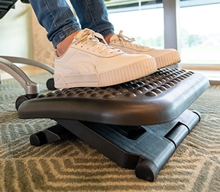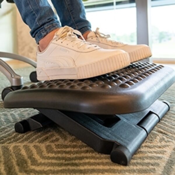 De Footmate Basic is een voetsteun die uitkomst kan bieden bij onvoldoende hoogteregeling van het bureaublad en/of de bureaustoel. Een goede voetsteun voorkomt dat de benen afhangen en afknellen en draagt bij aan een betere werkhouding.